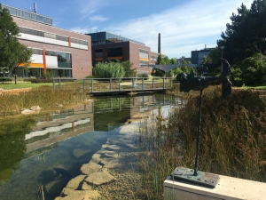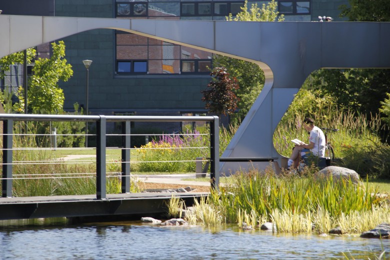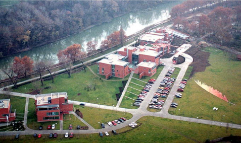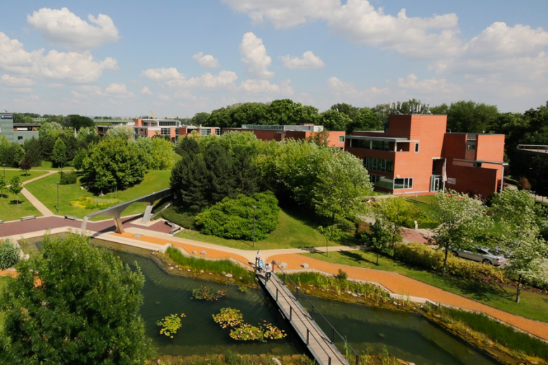 Graphisoft Park is located directly on the banks of the Danube in an 18-hectare green area. The designers of the Park paid special attention to nature and the preservation of green spaces. The buildings are surrounded by a spacious grove and the trees grow higher than the houses. The multi-level underground car parks were also constructed with the same purpose in mind, so that the landscape is determined not by the multitude of parked cars but by greenery. The atmosphere is defined by the protected natural park on the Hajógyári island across the river, the lake in the middle of the Park and, of course, the uniquely quiet promenade along the Danube.