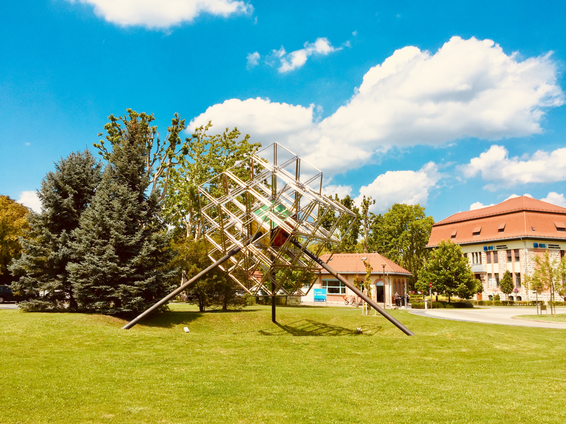 The atmosphere is also served by the contemporary works of art placed in the Park. Some of them were chosen by our tenants. Take a look at the picture gallery of the sculptures and the testimonies of their creators.
